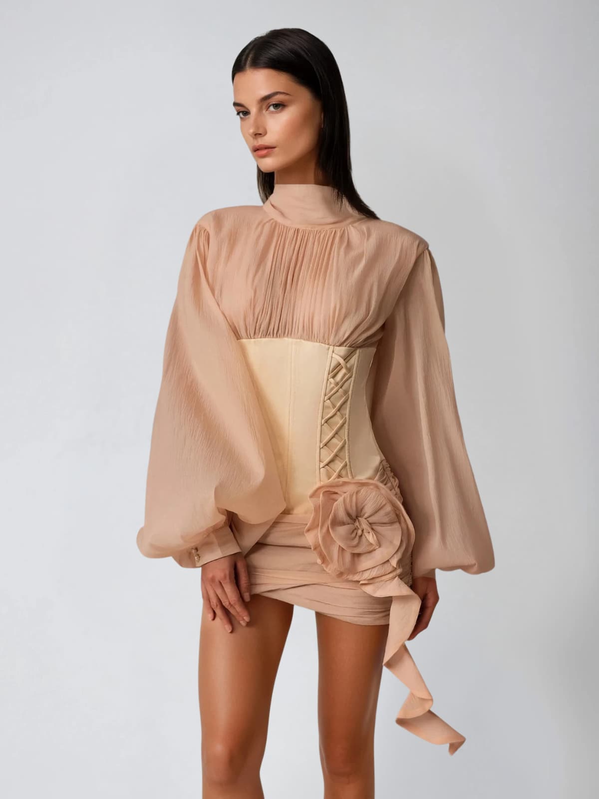Gyrax Long Sleeve Corset Flower Mini Dress
