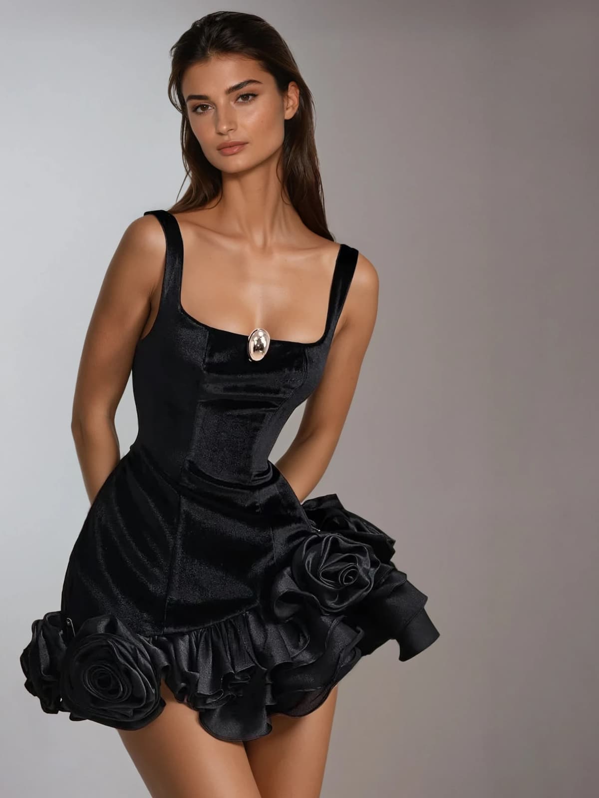 Elevate your style with the Kadija Square Neck Flower Velvet Mini Dress. Its luxurious velvet fabric feels soft against your skin, while the delicate floral pattern adds a touch of feminine charm. The flattering square neckline and mini length create a modern silhouette perfect for any special occasion or night out. Step into elegance and turn heads effortlessly with this standout dress.