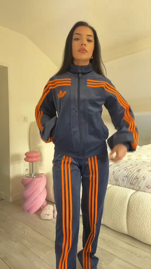 This exclusive Adidas set blends soft, cosy fabric with bold orange stripes for a clean, confident look that stands out on any day.