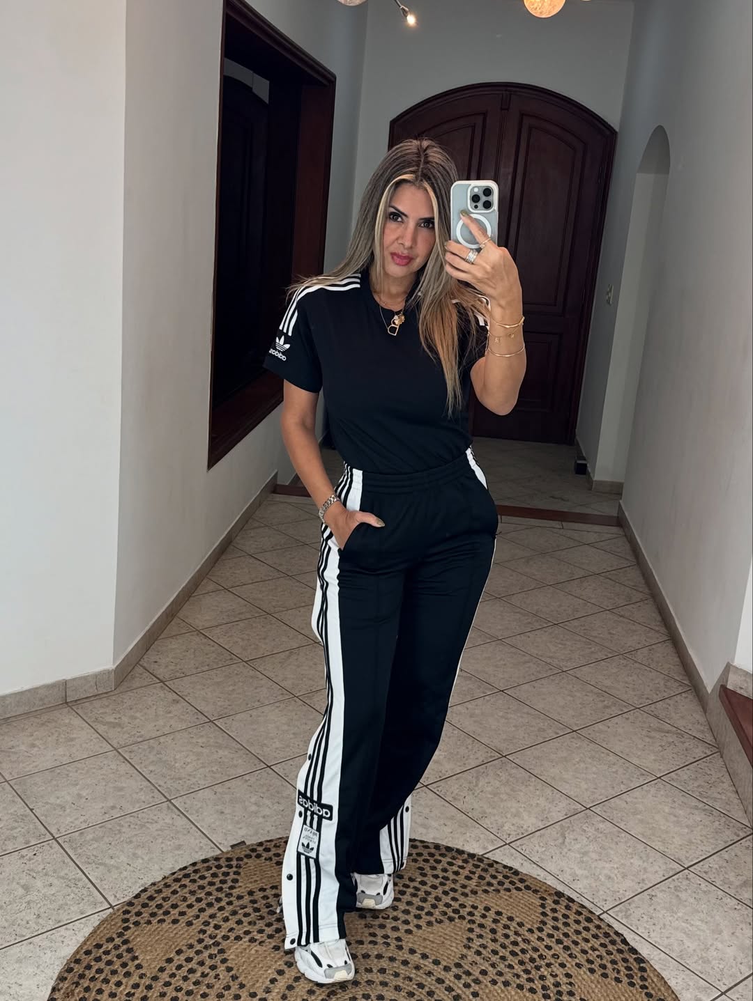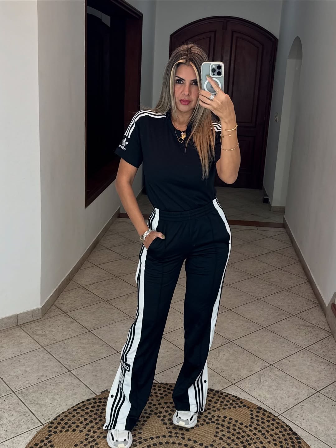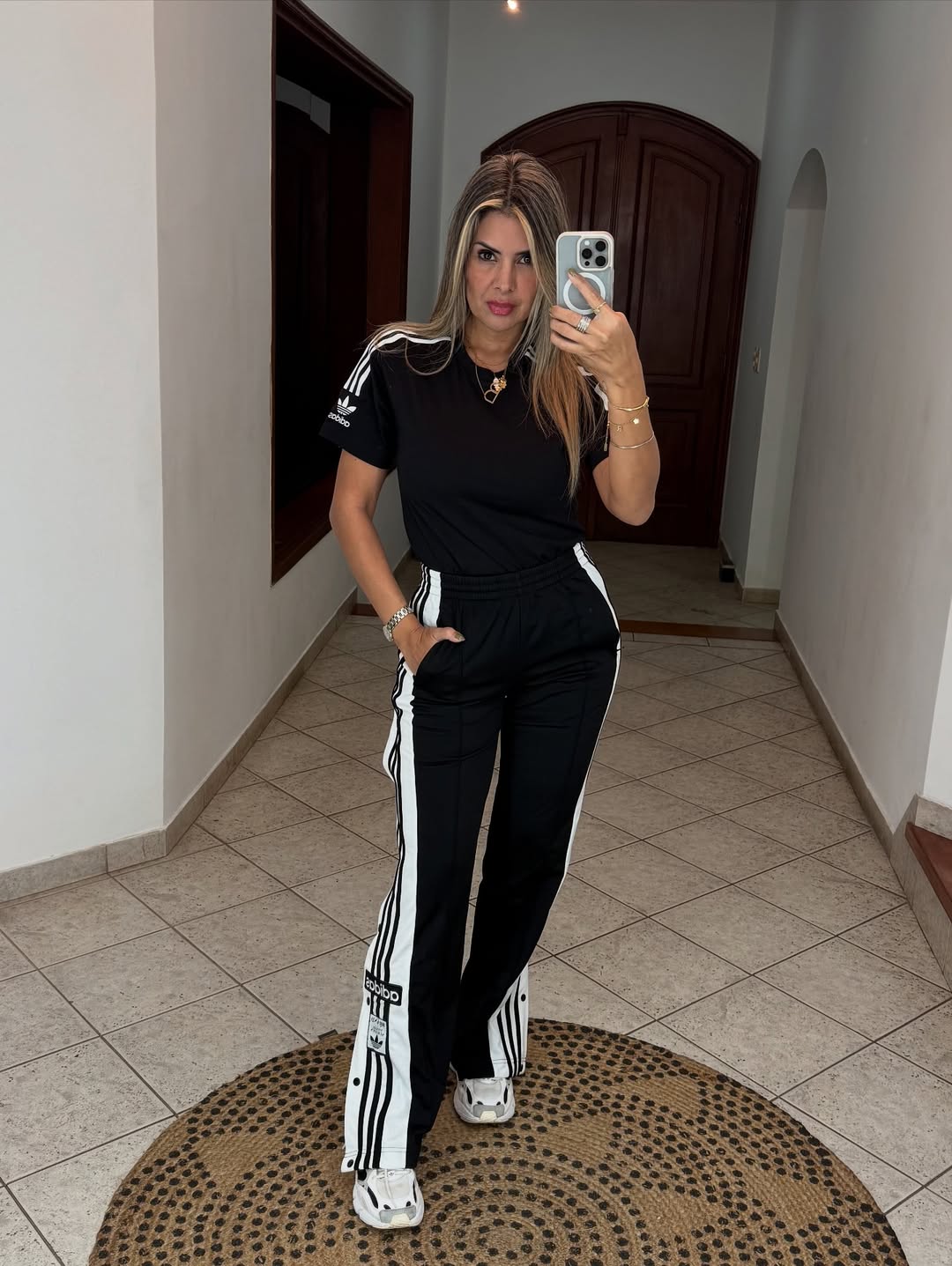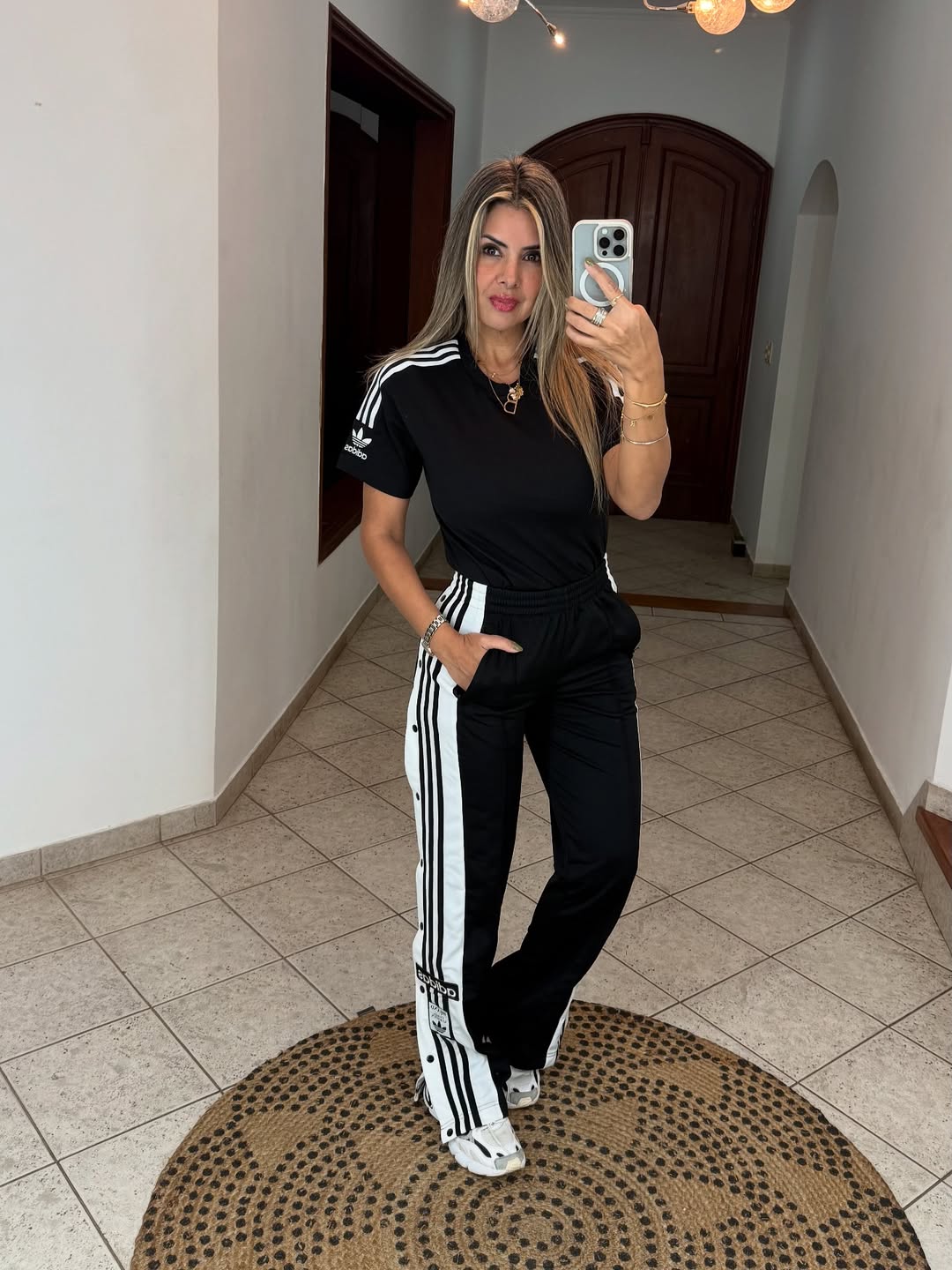The Originals™ Retro Snap Set pairs a classic black crewneck tee with high-waisted snap track trousers. Featuring iconic white stripes and retro logo details, this set brings back vintage streetwear energy with a modern twist.