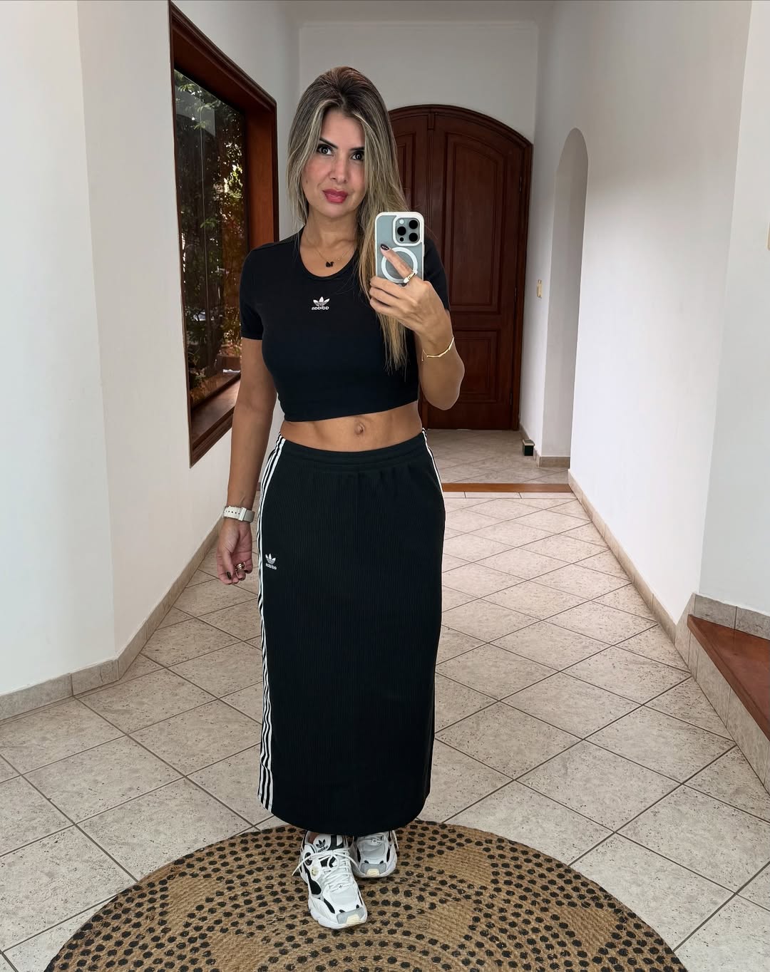 Designed for bold women who love to move in style – the Originals™ Feminine Street Set blends the soft elegance of a fitted crop top with the empowering silhouette of a midi skirt featuring side stripes.