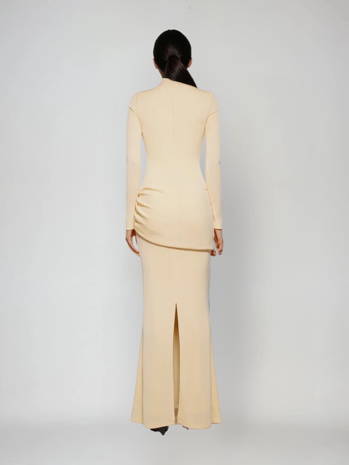 The Paeltrix Long Sleeve Ruched Maxi Dress in Butter Yellow offers a flattering silhouette with its strategically ruched design that enhances your curves while providing comfort. The soft butter yellow hue brings a fresh, sunny glow to your wardrobe, perfect for any occasion from daytime events to evening gatherings. Its long sleeves add elegant coverage, making it a versatile choice for all seasons. Embrace effortless style and confidence with this sophisticated maxi dress