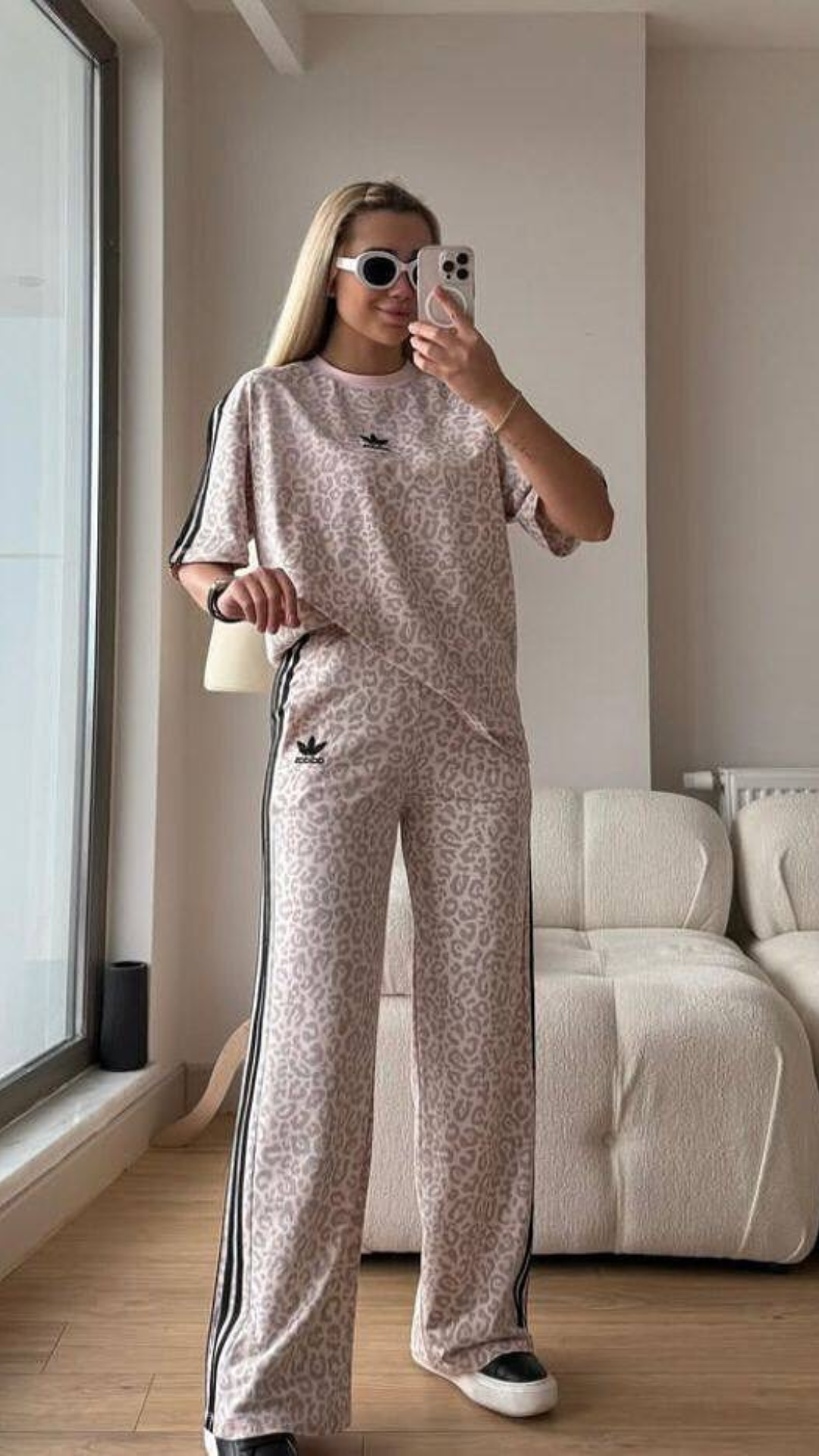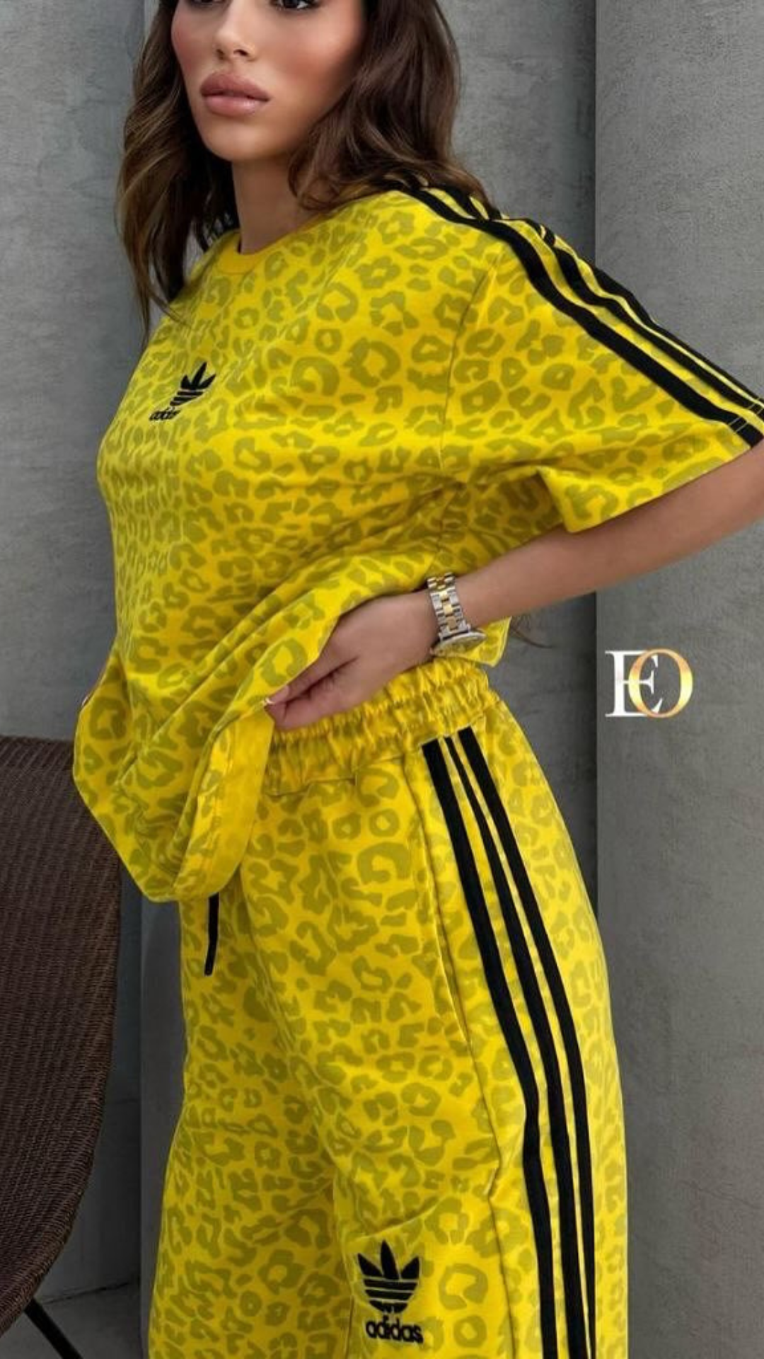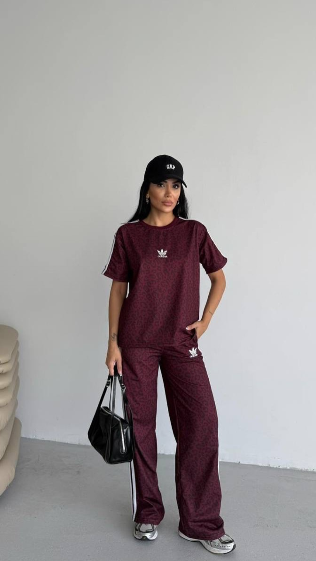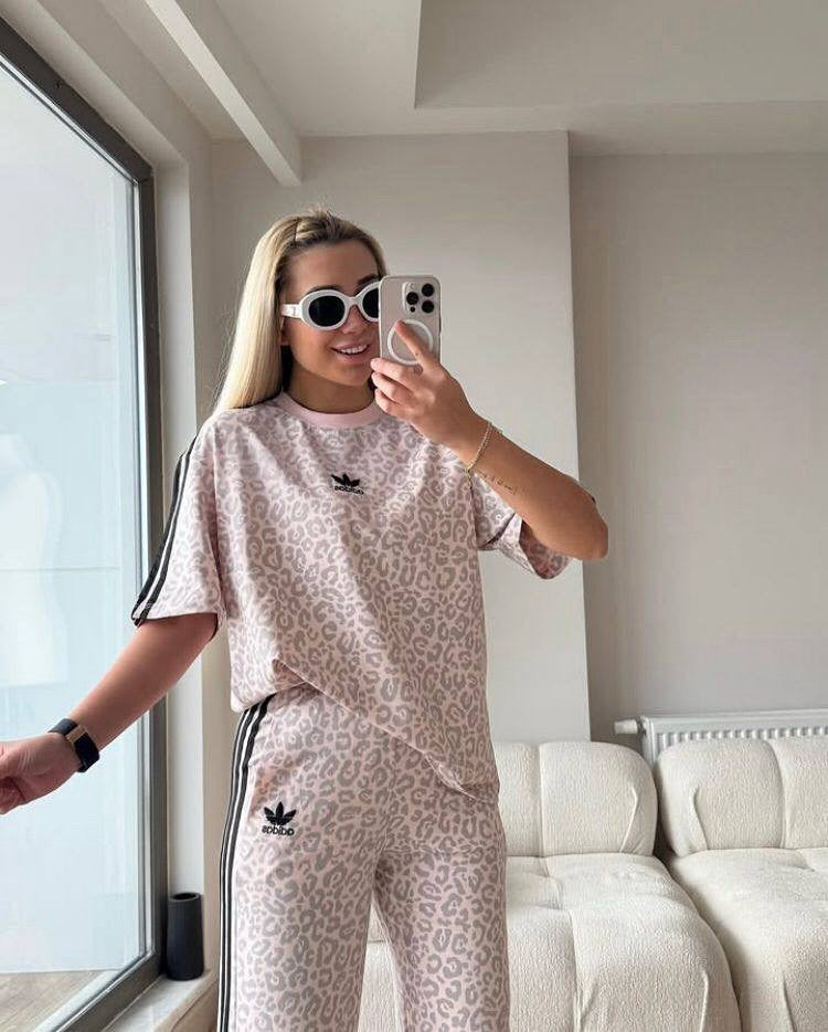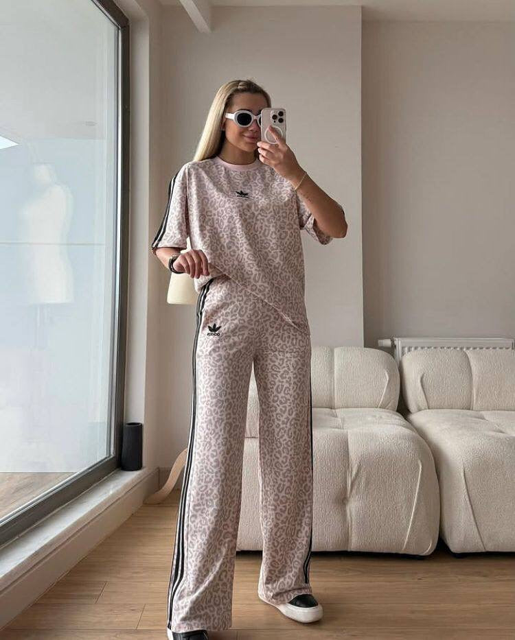 This set features a loose-fit oversized top paired with wide-leg trousers – delivering effortless elegance with bold character.